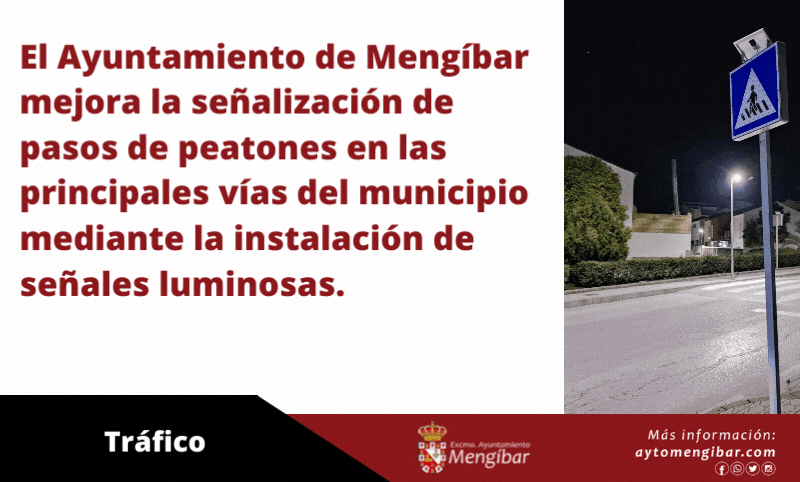 La Concejalía de Tráfico del Ayuntamiento de Mengíbar mejora la visibilidad de los pasos de peatones de las principales calles y vías del municipio con la instalación de señales luminosas en los mismos.